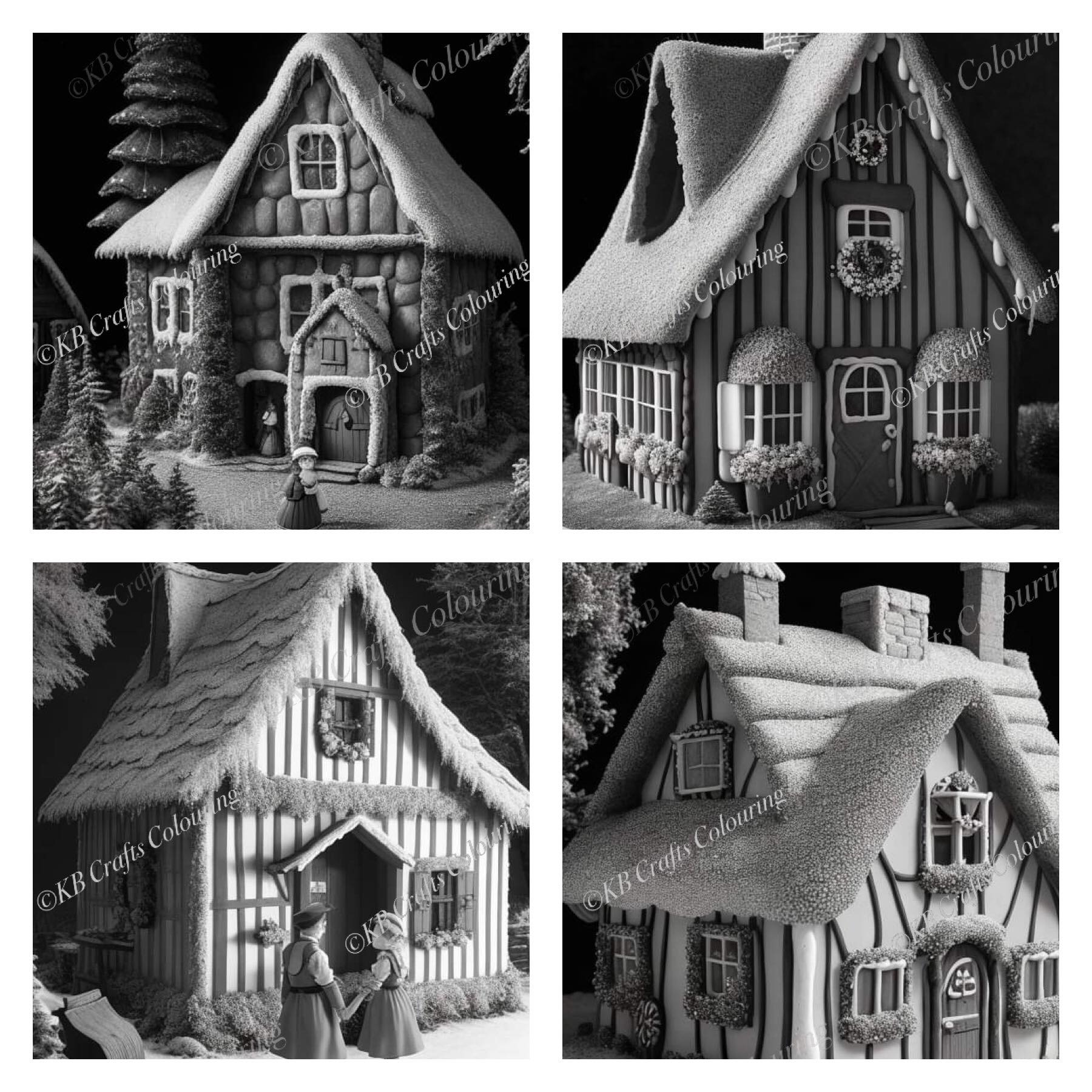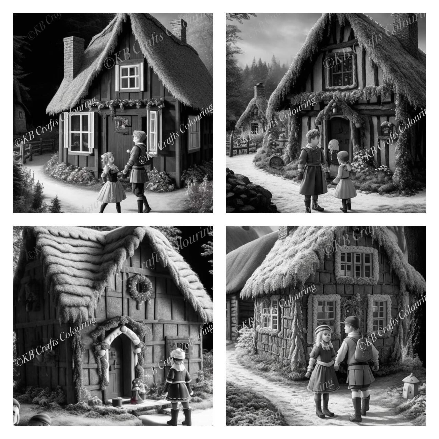 Sweet Cottages, Light and Dark Greyscale AI versions.